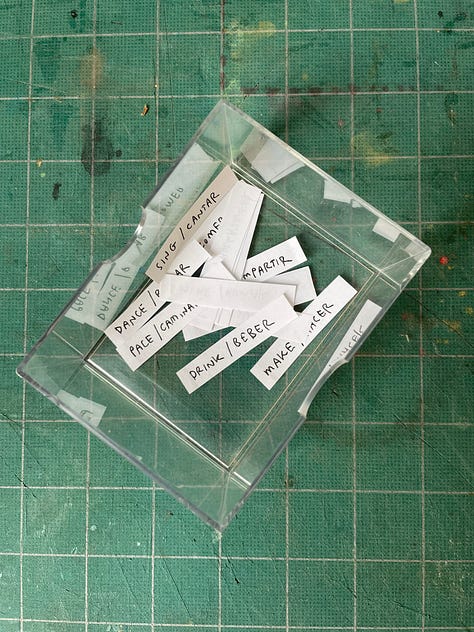 Write a list of activities on strips of paper / Escribe una lista de actividades en tiras de papel